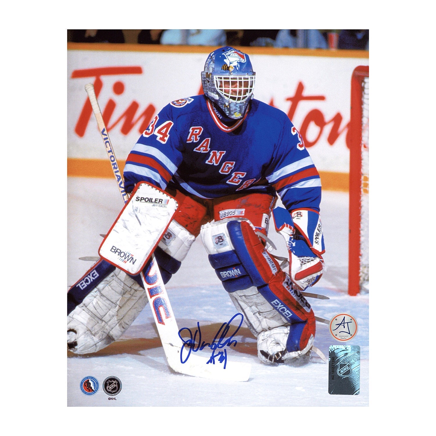 • This 8x10 photo is hand-signed by John Vanbiesbrouck.
