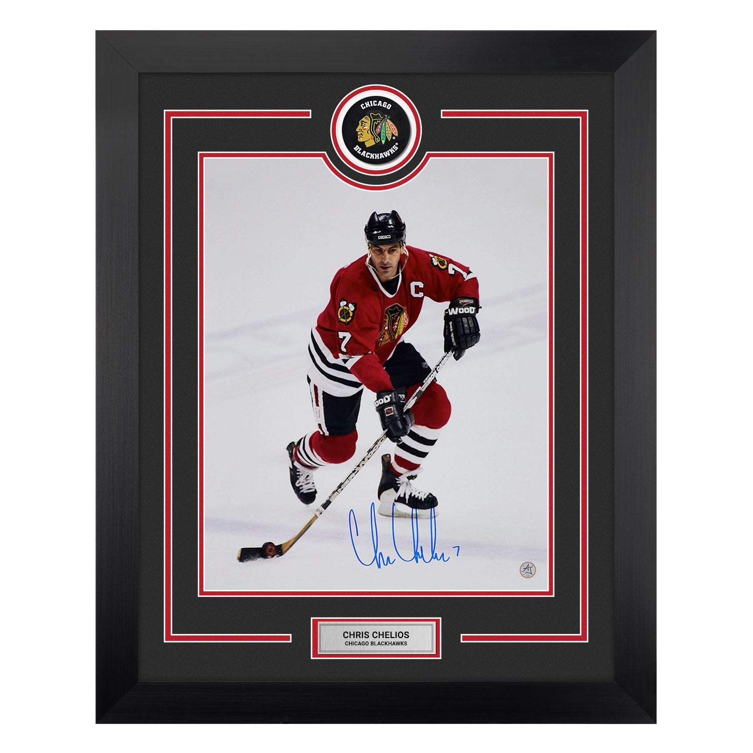 Chris Chelios Signed Chicago Blackhawks Puck Display 26x32 Frame